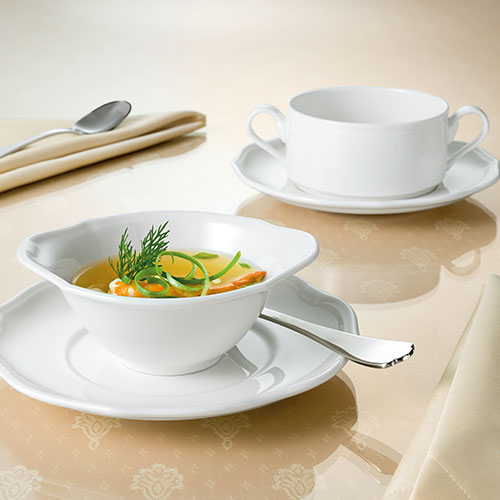 Kratzfest, bruchfest, spülmaschinengeeignet: Villeroy & Boch Porzellanqualität und das hochwertige Inglasur-Druckverfahren sind perfekt für den Gastronomiealltag.
